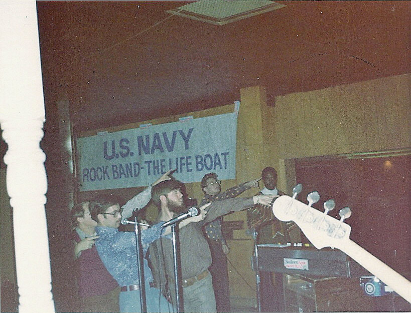The Lifeboat Rock Band unit was the premier road show for the recruiting efforts in the midwest.  This was also the Zumwalt years; thus the civilian attire worn by this talented group of characters. I took up the job of shepherding this flock and even had the title "Lifeboat Commander" added to my name tag.